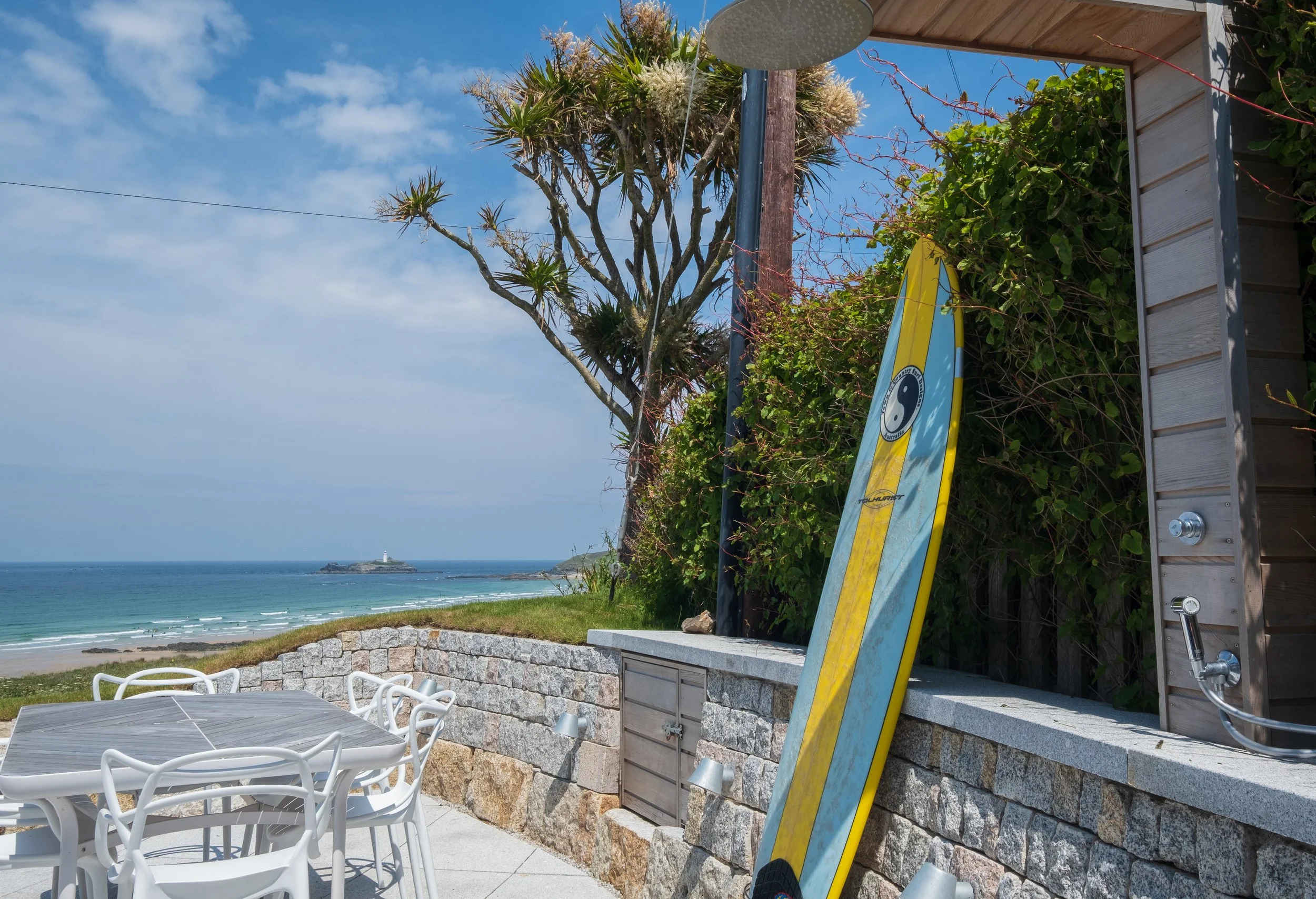 The lookout has an amazing private Cornish granite terrace, outdoor heated shower and direct access to the dunes and beach from the private terrace.
